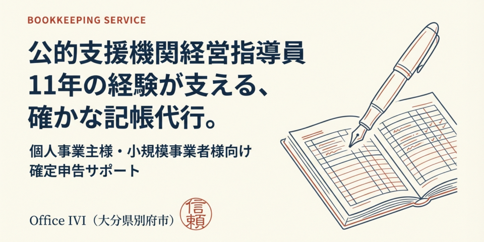 - 記帳代行(税理士資格は有していないため、日頃の経理事務を超える決算指導や個別の税務指導は行うことができません)